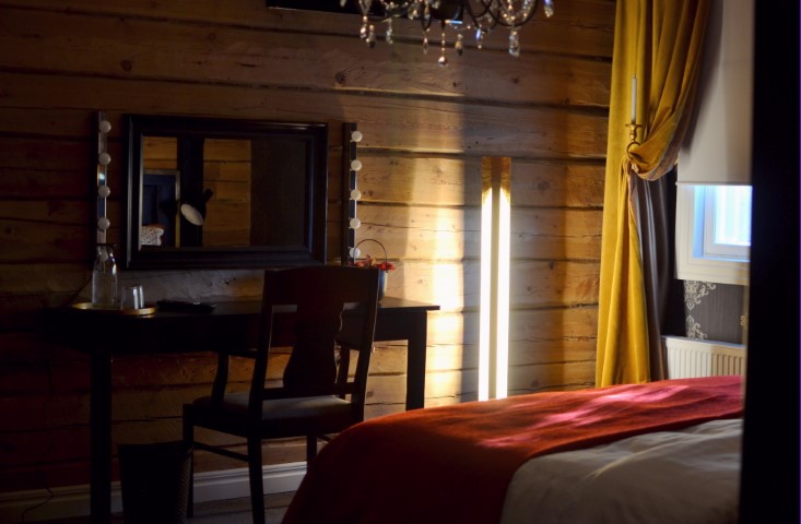 Boutique Hotel Kemi 1932 The largest of the rooms is called the Suite, or "Suite" in international parlance, because of its spaciousness and its stately décor. In this room you can feel the spirit of the old railway station and imagine yourself in an old-fashioned saloon carriage, where the President himself would have been accommodated for his journey.